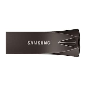 SAMSUNG BAR Plus USB 3.2 Flash Drive, 512 GB USB padrão Tipo-A, velocidades de até 400 MB/s, cartão de memória de armazenamento portátil, pen drive durável compatível com USB 3.0/2.0, MUF-512BE4/AM, - Velocidade com estilo: a próxima geração do BAR Plus eleva o pen drive a um item essencial para o dia a dia, oferecendo velocidades impressionantes em um design impressionante; cabe na sua mão, um minimalismo puro que combina estilo, velocidade e confiabilidade de forma inteligente - Transferir arquivos em um flash: recupere seu tempo; velocidades de leitura rápidas e convenientes de até 400 MB/s¹ com uma interface USB 3.2 dá a você mais tempo para trabalhar, jogar, assistir e criar - Resistente e elegante: o corpo de metal resistente mantém seus dados seguros e intactos, enquanto o chaveiro integrado evita extravios ou perdas acidentais; o BAR Plus é a combinação ideal de design deslumbrante e durabilidade sem preocupações - Adapta-se a todas as necessidades: se você estiver usando um PC ou um console de jogos², conte com o BAR Plus para ampla compatibilidade; é um verdadeiro jogador de equipe quando se trata de uso pesado de aplicativos ou economia de arquivos para flexibilidade total - Protegido para tranquilidade: o SAMSUNG BAR Plus é resistente o suficiente para enfrentar qualquer coisa. Com proteção³ cobrindo tudo, desde água até temperaturas extremas, pode lidar com o desgaste