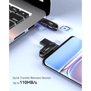 - [Transferência ultrarrápida] Esta unidade flash USB C otimiza a tecnologia USB 3.0 (USB 3.1 Gen 1) para aumentar as velocidades de leitura e gravação de até 110 MB/s e 30 MB/s, respectivamente, fazendo backup rápido de dados massivos e liberando muito espaço para armazenar mais.