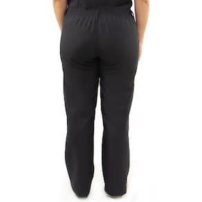 Calça com elástico na metade da cintura (cós meio elástico), permite um maior conforto.
