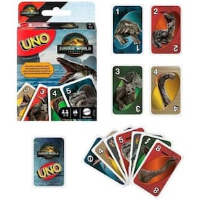 Prepare-se para uma aventura pré-histórica emocionante com o UNO Jogo de Cartas Jurassic World Rebirth - MATTEL - JFT28 Esta edição especial do clássico UNO transporta você para o perigoso e fascinante universo de Jurassic World, combinando a diversão estratégica que você já conhece com a intensidade dos dinossauros. Principais características: Edição Temática Jurassic World Rebirth: As cartas são adornadas com ilustrações incríveis e detalhes dos dinossauros e personagens de Jurassic World, tornando cada rodada uma verdadeira caça. Regras Clássicas com uma Garra Extra: Mantenha a emoção tradicional do UNO de combinar cores e números, mas esteja pronto para as cartas de ação especiais com temática de Jurassic World que podem mudar o rumo do jogo e surpreender seus oponentes Ideal para Fãs de Dinossauros e UNO: Perfeito para crianças a partir de 7 anos e adultos, este jogo é a pedida certa para reunir a família e os amigos para momentos de pura diversão e adrenalina. Portátil e Fácil de Levar: Leve a aventura de Jurassic World para qualquer lugar Seja em viagens, encontros com amigos ou reuniões familiares, a diversão está garantida. Qualidade Mattel: Produzido pela Mattel, sinônimo de brinquedos de qualidade, o UNO Jurassic World Rebirth JFT28 garante durabilidade e muitas horas de entretenimento.