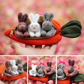 Abra o zíper do brinquedo de boneca de coelho, 3 coelhinhos em uma bolsa de cenoura. AVALIAÇÃO/FEEDBACK DO CLIENTE Essa é realmente a coisa mais fofa que eu já vi na minha vida. Demorou muito para chegar até mim, mas valeu muito a pena. É tão bem feito e exatamente como as fotos. Muito obrigado por fazer meus coelhinhos. E nada me empolgou mais do que ver aquele chaveiro de elefante. Que bônus. Obrigado. Muito bom, o bebê para quem ganhei isso adorou a cenoura e os coelhinhos. Ela aprendeu a compactar e descompactar rapidamente. Ótimo brinquedo educativo. Cor: marrom/cinza/branco Tamanho: aproximadamente 7,5 polegadas