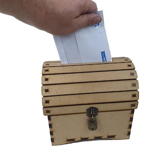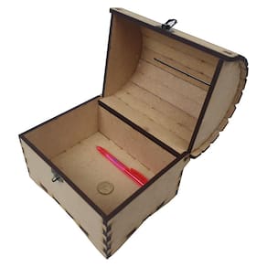 Urna Baú Cofre Com Cadeado Vintage Madeira MDF Pirata A LaserX apresenta seu baú / urna em madeira MDF de 6mm em tamanho grande. Possui um orifício superior que pode receber cartas, bilhetes, moedas e dinheiro, por exemplo. Possui ainda uma fechadura e cadeado metálicos em modelo antigo.