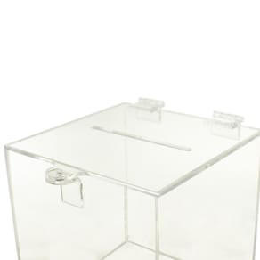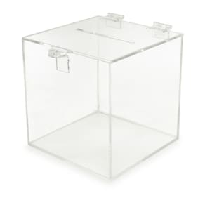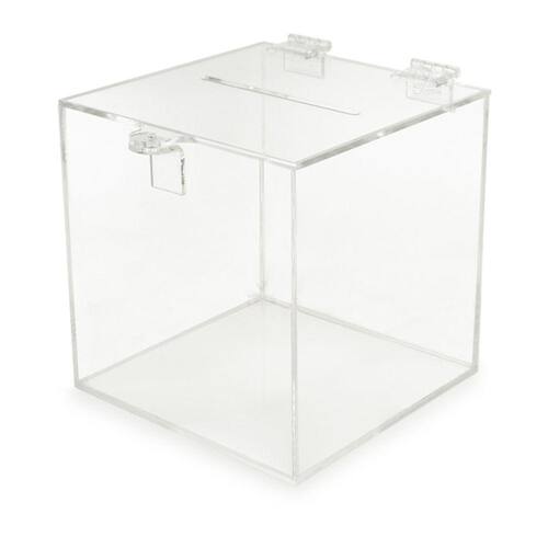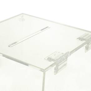 Urna em acrílico transparente com dobradiça e fecho, tamanho 15x15x15cm, cubo. A urna é ideal para sorteios, sugestões, idéias, pode ser usada em balcões, mesas, estabelecimentos, onde desejar.Produto:Urna acrílica cubo transparente1 peçaNão acompanha cadeado Utilizações: Sorteios, promoções, sugestões, eventos, cofre, caixa, etc. Para colocação de cupons, fichas, dinheiro, papéis em geral, etc.Características:Corte feitos com perfeição Material virgem de alta qualidade Produzido pela Visual Laser Acrílicos- Tamanho:Cubo 15x15x15cmConservação:Para melhor conservação de qualquer material plástico e de seu Display,Ao realizar a limpeza não utilize álcool puro ou solventes, Apenas um pano úmido e macio é suficiente.GARANTIA:Garantimos que seu produto chegará livre de defeitos Trocamos seu produto em caso de quebra no transporteO produto acompanha uma película de proteção, que deve ser retirada pelo cliente.