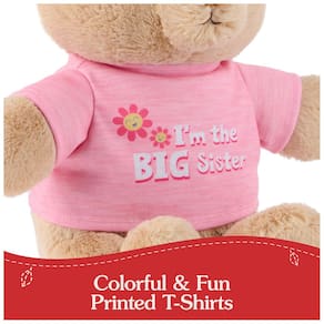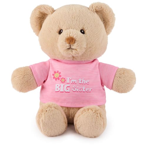 Ursinho de pelúcia sustentável GUND “I'm The Big Sister” com camiseta rosa, ursinho de pelúcia feito de materiais 100% reciclados para maiores de 1 ano, bronzeado, 12”