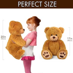 Adorável brinquedo de pelúcia Teddy Bear Este lindo ursinho de pelúcia tem cerca de 17 polegadas de altura (tamanho sentado) . Este ursinho de pelúcia possui almofadas de patas ousadas para um toque realista e um corpo fofo de pelúcia para um abraço perfeito; pelo extra macio, olhos negros, nariz lindo, pés estampados na pata, todos os detalhes o tornam perfeito; pele macia, pelúcia abraçável e corpo de pelúcia fofo tornam os abraços deste ursinho de pelúcia ainda melhores; lavável na superfície. Quando o urso precisar de um banho, basta lavar a superfície com um pano úmido; este brinquedo de pelúcia de 1,4 pés é incrivelmente macio, o recheio é fofo e levemente flexível, permitindo abraços doces . - ?? 20 polegadas de altura: o lindo ursinho de pelúcia mede 20 polegadas da cabeça aos pés (17 polegadas na posição sentada), perfeito para crianças se abraçarem e se aconchegarem, é fácil de levar para qualquer lugar. Este lindo ursinho de pelúcia pode acompanhá-lo a qualquer hora e lhe trazer felicidade para sempre - ?? Material de enchimento premium: cada ursinho de pelúcia macio é feito com poliéster e material de pelúcia, o recheio é macio e levemente flexível, perfeito para abraços e abraços - ?? Durável e seguro: os olhos lavados e o nariz costurado garantem um uso seguro e durável; os olhos não podem ser mastigados ou Escolhidos facilmente por crianças pequenas; pêlo extra macio, olhos negros, lindos traços faciais e nariz — ?? Abraçáveis e adoráveis: esses brinquedos de pelúcia macios de pelúcia são perfeitos para abraçar e aconchegar, descansar e trazer sorrisos e conforto, um ótimo presente de formatura para crianças, perfeitos para decoração de festas temáticas para esposa, namorada, neta, neto e amigos — Ótimo ??: Esses bichinhos de pelúcia macios e fofos são um ótimo presente para feriados como Natal, Ação de Graças, Páscoa e Dia dos Namorados; animais de pelúcia sempre fazem um ótimo presente para ficar bem, presente de aniversário, presente de chá de bebê e amigo para a primeira comunhão