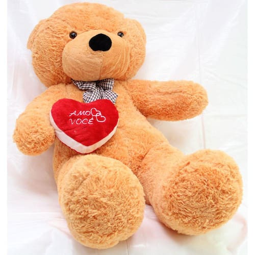 Urso Caramelo Romântico com Coração de Pelúcia Gigante / Grande Super Fofo Anti-Alérgico com 1,40 metros. 140cm