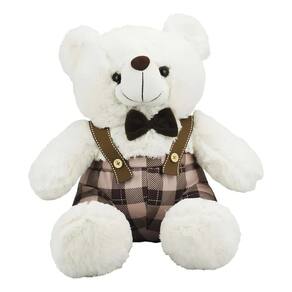 Com um acabamento impecável e textura extremamente macia, este ursinho vem vestido com um charmoso conjunto de suspensórios e gravata borboleta, conferindo um visual sofisticado que o torna ideal tanto para ser o melhor amigo de aventuras de uma criança quanto para compor a decoração de nichos e prateleiras em quartos infantis ou festas temáticas.