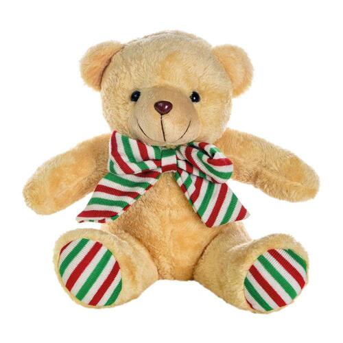 Urso De Pelucia Com Laço Listrado Verde, Vermelho, Branco E Marrom