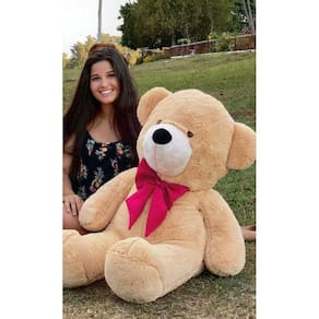 O urso vem cheio e com laço. Produto 100% pelúcia acrílica com enchimento antialérgico.