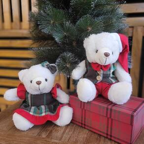 Urso de Pelúcia Natalino – Vestido Xadrez Vermelho e Verde 20cm