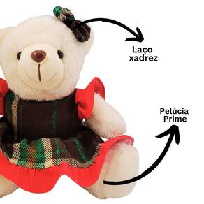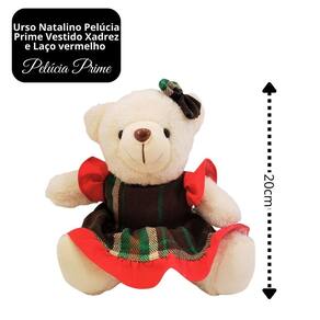 Urso Natalino Pelúcia Prime Creme Vestido Xadrez 20cm