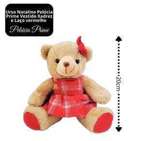 Urso de Pelúcia Natalino – Vestido Xadrez e Lacinho Vermelho 20cm