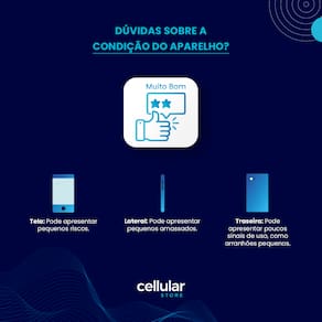 Atenção: Produtos apresentam alguns sinais de uso como pequenos riscos, mas nada que interfira em seu funcionamento. Produto que já foi usado, ou seja, não é mais considerado um produto novo, mas que está totalmente desbloqueado para todas as operadoras, reconfigurado de acordo com os padrões do fabricante (sem dados de terceiros) e pronto para uso.