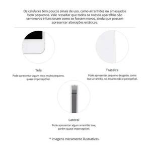 Celular Seminovo na condição Muito Bom que apresenta poucos sinais de uso na tela somente vistos de perto sob luz forte e com sinais mais nítidos nas laterais e traseira.