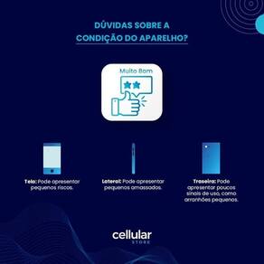 Assim como você, no mundo eletrônico seguimos tendências e escolhemos por qualidade. Com tantas tecnologias surgindo, queremos te manter atualizado com os melhores aparelhos celulares e os melhores preços do mercado! Na CellularStore, um aparelho seminovo é analisado rigorosamente por um especialista antes de ser colocado à venda para quem busca um novo celular. Você garante o seu novo celular com a certificação da revisão do especialista, com garantia do produto, da entrega e com facilidade de pagamento!