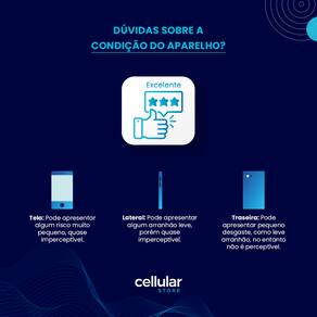 Assim como você, no mundo eletrônico seguimos tendências e escolhemos por qualidade. Com tantas tecnologias surgindo, queremos te manter atualizado com os melhores aparelhos celulares e os melhores preços do mercado! Na CellularStore, um aparelho seminovo é analisado rigorosamente por um especialista antes de ser colocado à venda para quem busca um novo celular. Você garante o seu novo celular com a certificação da revisão do especialista, com garantia do produto, da entrega e com facilidade de pagamento!