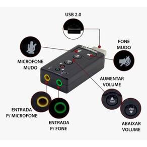 Usb Para Som 7.1 A placa de Som USB 7,1 3D Externa é Ideal para conectar Headsets, Headphones e Microfones a entrada USB do computador evitando ruídos e com qualidade de som digital 7.1 3D. Indicada também para gravar podcasts, descrições para vídeos, entre outros. Uma excelente alternativa para quem está com as entradas de áudio do Notebook ou PC danificadas. Também pode ser utilizado em jogos com qualidade de 7.1 aproveitando todos os detalhes do game. A Placa oferece tecnologia Plug and Play PnP que permite conectar o dispositivo em seu computador e este é automaticamente reconhecido e configurado para funcionar em seu sistema, dispensando a instalação de drivers. Com o Adaptador Placa de Som 7.1 para PC, você pode: - Ligar seu HeadSet, Headphone, Microfones e Fones de celulares tradicionais - Escutar o áudio do PC em excelente qualidade 7.1 Qualidade Garantida Compre agora mesmo a Placa de Som USB 7.1 e aproveite o máximo da Tecnologia