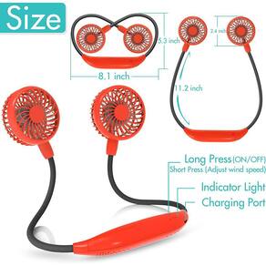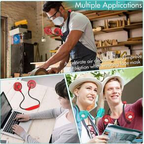 ?Vento mais forte e ultra silencioso? Em comparação com outros ventiladores, este ventilador de neckband portátil é projetado com 3 lâminas e duas cabeças de ventilador, oferece um vento frio muito mais poderoso de ambos os lados. O motor ultra-silencioso produz um vento silencioso, permite que você aproveite o frio desejado sem perturbação de ruído alto. Use o ventilador ao redor do pescoço e deixe a brisa fresca bater no seu rosto. ?Mãos-livres e ajustáveis em 360°? Design ergonómico mãos-livres, leve. Feito de material de silicone macio de alta flexibilidade, você pode ajustar os ventiladores em 360 graus como quiser. Confortável de usar em volta do pescoço, fácil de transportar em sua mala ou mochila, ou colocá-lo sobre a mesa como um ventilador de mesa. Um gadget obrigatório para aqueles que sofrem de calor durante o trabalho, exercício, viagens, caminhadas, camping, concertos ao ar livre. Design Mãos-Livres da Moda: O ventilador mãos-livres foi projetado como um fone de ouvido para liberar as mãos em qualquer lugar; O estilo elegante faz você parecer tão legal e você pode levá-lo a qualquer lugar em clima quente. ?4-16 horas de funcionamento e 3 velocidades?Baterias grandes fornecem 4-16 horas de tempo de funcionamento (dependendo das diferentes velocidades). Ajuste a velocidade adequada do ventilador pressionando o botão liga/desliga repetidamente. ?Baixo ruído e design confortável?O motor do ventilador neckband foi modificado para que o ruído de pelo menos 25 dB possa ser gerado durante o funcionamento. É silencioso o suficiente para ouvir sua própria respiração. Feito de ABS ecológico e silicone. Torna a ventoinha mãos-livres mais suave, durável e silenciosa. ?Design e garantia compactos?Os ventiladores de pescoço pessoal pesam cerca de 268g e são ultraleves, colocam menos pressão sobre o pescoço.