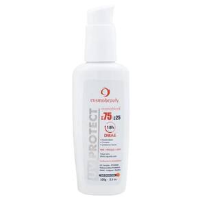 UV Protect FPS75 com Dmae proporciona redução dos sinais do envelhecimento cutâneo e ampla proteção solar. É composto por ingredientes ativos que melhoram a tonificação cutânea. Sua ação antioxidante previne o envelhecimento precoce. A tecnologia Derma Solar atua na prevenção do desgaste e envelhecimento cutâneo causado pela danificação da pele fotoexposta.