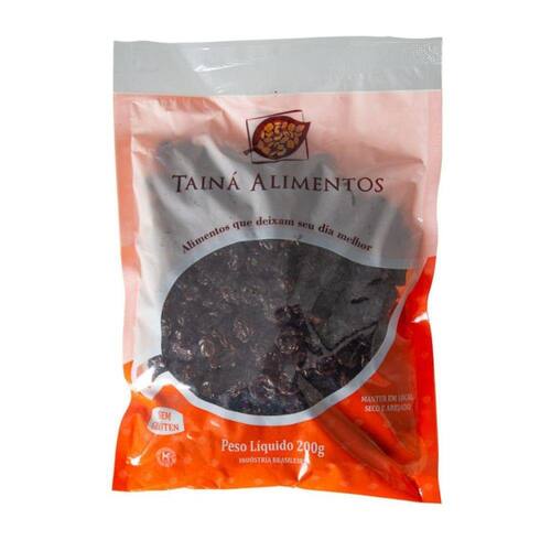 Uva Passa Preta Tainá Alimentos pacote de 200g - sem glúten livre de contaminação cruzada. A uva passa, também conhecida apenas como passa, é uma uva seca que foi desidratada e que possui um sabor doce, devido ao seu alto conteúdo em frutose e glucose.O consumo da uva passa pode ter vários benefícios para a saúde, desde que consumidas com moderação, já que possuem bastante fibra e ácido tartárico, substância que contribuem para a saúde do intestino. Além disso, este tipo de uva proporciona energia, é antioxidantes e tem alto teor de vitaminas e minerais.