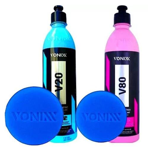 V20 Refino Remove Riscos + V80 Selante Protecao + Aplicador V20 é um polidor de refino que remove marcas ocasionadas na etapa de corte. Sua fórmula especial é ideal para vernizes asiáticos ou extra macios. Promove excelente acabamento na peça polida. MODO DE USO: - Agite bem antes de usar - Limpe bem a superfície a ser trabalhada - Utilizar politriz com velocidade entre 800 a 1600 RPM ou Roto-orbital e boina de espuma média - Aplicar o produto na peça em quantidade suficiente para trabalhar em área de 50x50cm - Ligar a politriz e realizar o polimento, exercendo pressão moderada até observar o brilho desejado - Se necessário, repita a operação - Se for preciso remover o excesso com uma toalha de microfibra --------------------------------------------------------- Desenvolvido com a mais alta tecnologia de polímeros hidrofóbicos, o Selante V80 proporciona alta proteção para a pintura do veículo. Fácil aplicação e remoção, além de oferecer alta proteção contra raios UV. Contém nano abrasivos que ajudam a eliminar pequenas imperfeições, deixando um acabamento de alto brilho. Possui polímeros especiais de alto peso molecular que escurecem a pintura, deixando um aspecto de brilho molhado e profundo. MODO DE USAR: 1 - Agite bem antes de usar 2 - Usando um aplicador de espuma, aplique uma pequena quantidade fazendo movimentos circulares e uniformes 3 - Para melhores resultados, utilize politriz roto orbital com boina de espuma macia 4 - Aguarde secar por no mínimo 15 minutos para que o produto atinja o ponto de cura 5 - Remova o produto utilizando flanela de micro fibra limpa e seca até obter um brilho impecável