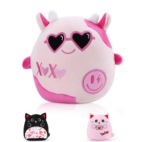 - Cow Plush: design engenhoso de pelúcia de vaca em estilo formal, como óculos de coração bordados rosa, “XOXO” e uma combinação de rostos sorridentes distintos, ele o acompanhará e lhe trará boa sorte.