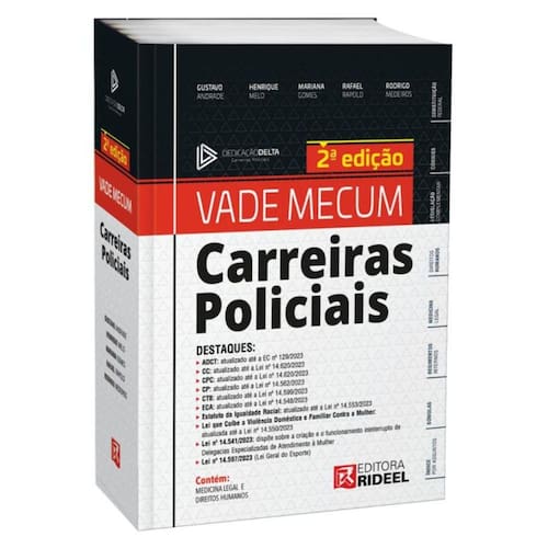 A Editora Rideel, reconhecida no mercado editorial pela excelência de seus Vade-Mécuns, apresenta a 2ª edição do VADE MECUM CARREIRAS POLICIAIS em parceria com o curso DEDICAÇÃO DELTA. Sempre pensando em como facilitar ainda mais o estudo do concurseiro e a pesquisa do leitor, a capa traz um guia referencial sobre a obra. Assim, basta verificar a norma que deseja consultar e localizá-la nas tarjas laterais. Seu formato e projeto gráfico abrangem praticidade e modernidade, facilitando o manuseio e a consulta aos temas. As temáticas foram selecionadas após detida análise dos editais das carreiras policiais, bem como as normas indicadas para atuação profissional, de forma que é o único VADE MECUM no mercado voltado DIRETAMENTE para os CONCURSOS e ATUAÇÃO das carreiras policiais, e prova disso é a INCLUSÃO das matérias de MEDICINA LEGAL e DIREITOS HUMANOS. Ean: 9788533960169