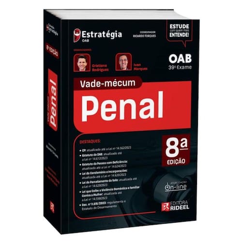 A Editora Rideel, reconhecida no mercado editorial pela excelência de seus vade-mécuns, apresenta a Coleção Vade-mécum Estratégia OAB. Elaborado pelos professores do corpo docente do Estratégia OAB, o conteúdo das obras da Coleção reflete a legislação que o aluno precisa para realizar a prova de 2ª fase, com absoluta atenção aos parâmetros definidos no edital. Os volumes estão estruturados com a CF, códigos e legislação complementar na íntegra ou em excertos relevantes para cada matéria. Constam ainda notas remissivas nos principais dispositivos legais, redigidas em um padrão assertivo e objetivo, para auxiliar a consulta ágil aos enunciados correlatos. As obras observam estritamente o edital FGV do Exame de Ordem, de modo que podem ser consultados durante a realização da prova prático-profissional. Não há no material qualquer conteúdo vedado pela banca examinadora. Com diagramação agradável, as obras contam ainda com vários recursos facilitadores de consulta, de modo que a Coleção seja profícua para a preparação e realização da prova de 2ª fase. Dentre eles, destacam-se: Índice cronológico geral, contendo todos os diplomas legais publicados na obra com as respectivas ementas oficiais; Notas remissivas objetivas e diretas a outros artigos, diplomas legais e súmulas dos tribunais superiores; Índice sistemático para cada código; Índice por assuntos geral da obra (que abrange a legislação complementar e súmulas); Atualizações de 2023 em destaque (negrito e itálico); Tarjas laterais para identificação das seções da obra; Indicação do número dos artigos no cabeçalho dos Códigos; Indicação do número das leis no cabeçalho da legislação. Ean: 9788533960497