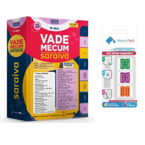 O Vade Mecum Saraiva Tradicional chegou à 40ª edição mais completo, atualizado e pronto para impulsionar sua trajetória em 2025! Líder de vendas no mercado jurídico brasileiro, o Vade Mecum Saraiva é a escolha número um de estudantes, concurseiros, advogados e profissionais do Direito há mais de 15 anos. Combinando tradição e inovação, esta edição traz legislação atualizada e funcionalidades que facilitam o uso em qualquer momento, seja nos estudos ou na prática jurídica. Por que escolher o Vade Mecum Saraiva 40ª edição 2025? - Mantenha-se atualizado: Acompanhe as mudanças mais recentes no ordenamento jurídico tudo selecionado com base na grade curricular das principais faculdades de Direito e em editais de concursos para carreiras jurídicas; - Encontre o que precisa com facilidade: Divisões coloridas e tarjas destacadas para você localizar qualquer norma com agilidade, além de fontes maiores nas seções mais importantes, como a Constituição, Códigos e CLT; - Pesquise de forma eficiente: Índices completos para buscar por assunto, ordem alfabética ou cronológica. Tudo à mão para você economizar tempo e focar no que realmente importa; - Dicas de pesquisa (legal design) - tutorial nas páginas iniciais sobre como utilizar seu Vade Mecum Saraiva de maneira completa. - Tenha o melhor material: Formato 18x27 cm, maior gramatura nas folhas para máxima durabilidade e clareza visual; - Amplie seu aprendizado: Plataforma online e com conteúdos complementares, incluindo legislação adicional e atualização semanal de todo o conteúdo impresso, através do "Atualize seu Código". Com a tradição, organização e qualidade da Saraiva Jur, o Vade Mecum Saraiva é seu aliado para os estudos, passar na OAB, alcançar a carreira pública dos seus sonhos e se destacar no mercado jurídico. + Etiquetas Vade Mecum Tradicional Marca Fácil Marca: Não Informado