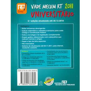 Este livro é destinado a atender às necessidades dos estudantes de Direito. Assim sendo, traz a Constituição Federal, os Códigos (CC, CPC, CP, CPP, CTN, CCo, CLT), legislação complementar selecionada e as súmulas dos Tribunais Superiores (STF, STJ, TST). Todos os textos encontram-se atualizados até 30.12.2010 - o Código Civil, pelas Leis 12.236/2010 e 12.344/2010; O Código de Processo Civil pelas Leis 12.195/2010 e 12.322/2010; O Código Penal pela Lei 12.234/2010; A CLT pelas Leis 12.275/2010 e 12.347/2010; A Lei de Execução Penal pelas Leis 12.245/2010, 12.258/2010 e 12.313/2010. Constam, também - Estatuto da Igualdade Racial - Lei 12.288/2010 e a Lei de Alienação Parental - Lei 12.318/2010. Notas remissivas e índices (sistemáticos e alfabético-remissivos dos Códigos e da Constituição cronológico da legislação complementar) visam proporcionar praticidade na consulta e na pesquisa. O leitor que se cadastrar contará, ainda, com atualização quinzenal gratuita da legislação pela internet até 04.11.2011.