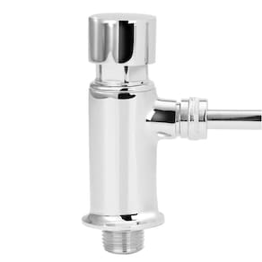 Válvula completa de descarga para mictórios de sanitários masculinos, composta por uma estrutura em metal, encorpada em latão e revestida em cromo, com botão em metal, possui mecanismo de acionamento manual e fechamento automático temporizado. Seu fechamento ocorre dentro de um período que pode variar entre 6 e no máximo 10 segundos após o acionamento. Sua aplicação propõe uma economia de até 70% de água no local de instalação, visando a economia de água em banheiros com grande circulação de pessoas. Com terminais em latão e anéis de vedação em borracha garantindo sua durabilidade e resistência e canopla de acabamento da parede e canopla de acabamento do mictório, garantindo uma boa eperiência de uso e estética para o ambiente. Material robusto com grande valor de qualidade agregado.