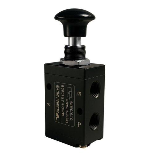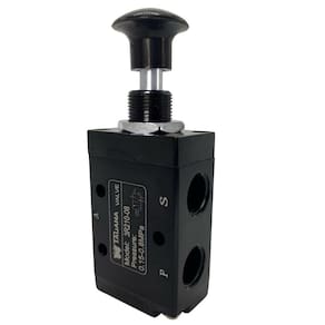 Valvula botao trava 3/2 vias 1/4 escape 1/4 - pn 3r210-08 Valvula 200 botao trava 3/2 vias 1/4 x000d Valvula mêcanica botão pneumatico serie 4r e 3r tipo: 5/2 vias, 3/2 vias com retorno mola, e com trava para ar comprimido e x000d Corpo e contra corpo em aluminio, eixo e pistão em inox, anel oring em buna n pressão de trabalho: minimo 0 bar maximo 8 bar temperatura 70c rosca bsp x000d T= trava na posição x000d M= mola retorna na posição ao soltar o botão. Serie 200 com cv = 0,89 serie 300 com cv 1,41 serie 400 com cv=1,78 x000d Marca: Tauana Ean: 7908633115487