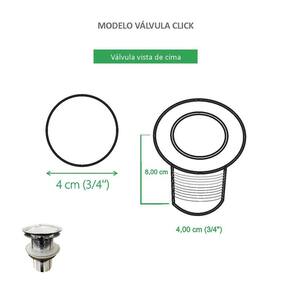 Válvula Click Cromada para Cuba de banheiro Esta válvula click traz a alta tecnologia sofisticação e qualidade, ideais para quem busca praticidade e eficiência. Com a função do escoamento da agua, possui um sistema rapido e simples com um clique, ela abre e fecha. Evita a entrada de insetos e do mau cheiro. Verifique as medidas do produto antes de efetuar a compra Especificações do produto: Válvula de escoamento Sistema Click Abre/Fecha ao apertar Para cubas de banheiro Não enferruja Evita o mau cheiro Evita a entrada de insetos 1 ano contra defeito de fabricação Dimensões do produto nas fotos Informações Técnicas: Marca: Reno Material: Aço Inox Formato: Redonda Cor: Cromada Acabamento: Brilho Atenção: Não incluso cuba e torneira. Dúvidas a Banho&Casa estará à disposição para atendê-lo de segunda a sexta das 8:30 - 17:30 hrs. Marca: Não Informado Ean: 7895099423433