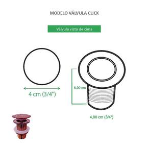 Válvula Click Rose Gold para Cuba de banheiro Esta válvula click traz a alta tecnologia sofisticação e qualidade, ideais para quem busca praticidade e eficiência. Com a função do escoamento da agua, possui um sistema rapido e simples com um clique, ela abre e fecha. Evita a entrada de insetos e do mau cheiro. Verifique as medidas do produto antes de efetuar a compra Especificações do produto: Válvula de escoamento Sistema Click Abre/Fecha ao apertar Para cubas de banheiro Não enferruja Evita o mau cheiro Evita a entrada de insetos 1 ano contra defeito de fabricação Dimensões do produto nas fotos Informações Técnicas: Marca: Reno Material: Aço Inox Formato: Redonda Cor: Rose Gold Acabamento: Brilho Atenção: Não incluso cuba e torneira. Dúvidas a Banho&Casa estará à disposição para atendê-lo de segunda a sexta das 8:30 - 17:30 hrs. Marca: Não Informado