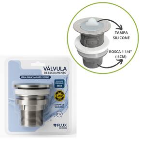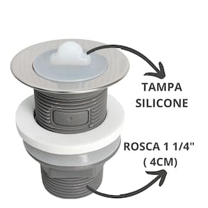 VALVULA DE ESCOAMENTO 1 1/4" INOX + PLASTICO TAMPA SILICONE ANTI INSETOS E MAU CHEIRO