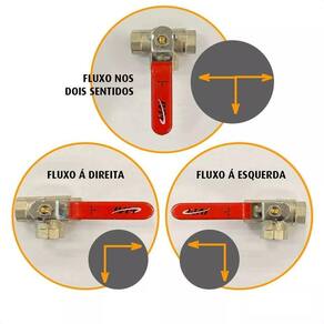 VÁLVULA ESFERA 3 VIAS FÊMEA, PASSAGEM EM T, 2