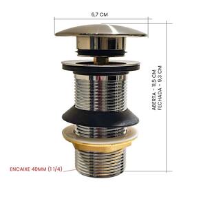 .Válvula para pia de banheiro compatível com sifões padrão (verifique a rosca da cuba antes de comprar).