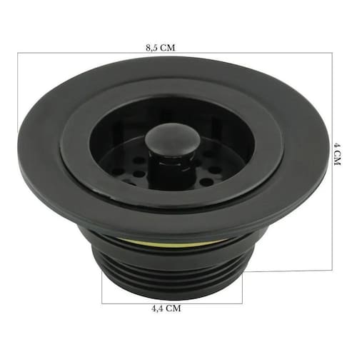 Valvula Ralo De Pia Metal 3,5 Preto Fosco Cozinha 1623