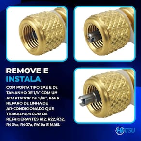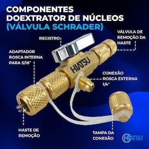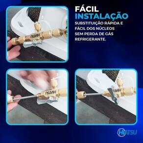 - Praticidade e Eficiência: Projetada para substituição rápida e fácil do núcleo Schrader sem a necessidade de liberar o gás refrigerante.