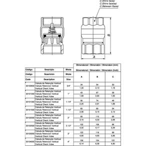 Pol C: 122 mm - 4.8 Pol - Rosca: NBR 6414 ISO R7/1 - Desenvolvida para retenção de fluido em refluxo de tubulações verticais. Objetos de decoração não inclusos. Imagens meramente ilustrativas. Modelo: Retenção vertical Bitola: 4 Pol Pressão máxima