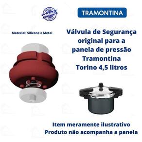 Nosso empenho é procurar o que há de mais atual e funcional no mundo culinário e para organização da sua casa, priorizando sempre a qualidade e a versatilidade dos produtos. Extremamente reforçado, garantido a segurança da panela . Modelos: 20558/620 20558/920 Material: metal, baquelite Embalagem contém: 1 válvula de segurança tramontina torino 4,5l - antes de cozinhar, verifique seu equipamento; - não sobrecarregue sua panela; - mantenha sempre os cuidados necessários para o bom funcionamento; - limpe-a corretamente; - use sempre produtos de qualidade. Manutenção em dia= panela segura. Gostou Esse produto pode ser seu aguardamos sua compra Marca: Não Informado