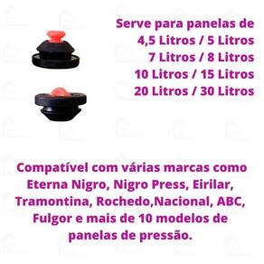 Kit com 20 válvulas de segurança rochedo - modelo grande para panela Garanta o bom funcionamento e a segurança da sua panela com este kit de válvulas rochedo modelo grande. Ideal para reposição em panelas de maior capacidade, oferece excelente vedação, resistência e compatibilidade com diversas marcas. Características: - modelo: rochedo - selo repetitivo grande - compatibilidade: panelas de 4,5l, 5l, 7l, 8l, 10l, 15l, 20l e até 30 litros - material: borracha e plástico de alta durabilidade - não deforma com o uso - uso: ideal para uso frequente, com segurança e praticidade Compatível com diversas marcas: - eterna nigro, nigro press, eirilar, tramontina, rochedo, nacional, abc, fulgor... E mais de 10 modelos diferentes de panelas Conteúdo da embalagem: - 1 pacote com 20 válvulas rochedo modelo grande Benefícios: - mais segurança: peça fundamental para evitar acidentes durante o uso da panela - durabilidade: ideal para quem trabalha com manutenção de panelas ou usa com frequência - versatilidade: compatível com panelas de alta capacidade e diversas marcas tradicionais do mercado A dona li utilidades atua há mais de 50 anos no mercado, selecionando itens de qualidade e confiança para facilitar o dia a dia da sua cozinha. - compra segura e garantida - do vendedor: 7 dias Dicas importantes: - sempre verifique as condições da válvula antes de usar a panela - não ultrapasse a capacidade de sua panela - mantenha a limpeza e conservação das peças em dia Manutenção em dia = panela segura Adquira já o seu kit e mantenha suas panelas funcionando com total segurança Marca: Não Informado Ean: 7898749651835