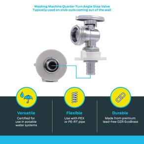 - Válvula de desligamento em ângulo: a válvula de fornecimento de água de crimpagem de latão permite o desligamento fácil do fluxo de água para a luminária final e permite manutenção e reparo sem ter que desligar a água para toda a casa; ideal para uso em pontas saindo da parede