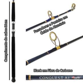 Vara leve composta por blank haste em Fibra de Carbono, passadores reforçados em Aço Inoxidaxel e cabo em borracha EVA.