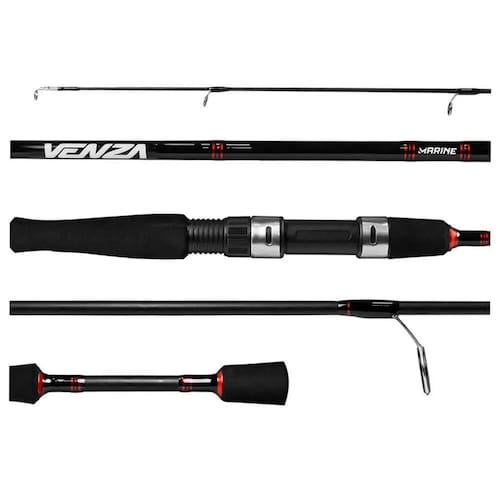 A Vara de Pesca Marine Sports Venza tem o blank constituído em carbono sólido, além de resistente e robusta, possui os novos passadores desenvolvidos em óxido de alumínio da renomada marca FUJI, agregando muito mais qualidade no equipamento e permitindo a utilização de linhas mais abrasivas, como as de multifilamento.