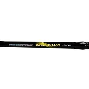 - Fabricante: Rapala - Modelo: MAGNUM 11RAMAG180XH - Utilização: Carretilha - Tamanho: 6'0" - 1,80 m - Linha recomendada: 80 – 200Lb - Casting (peso para arremesso): 40 – 120g - Potência: XH (Extra Pesada) - Ação: Extra Rápida - Secção: 1 (inteiriça) - Tamanho total do cabo: 70 cm (30 até o Reel Seat) - Reel Seat: Rapala - Passadores: 6 + ponteira (7 no total) - Material dos passadores: Óxido de alumínio e porcelana - Material do cabo: EVA inteiriço - Blank: Fibra Compostas - Peso aproximado: 710g