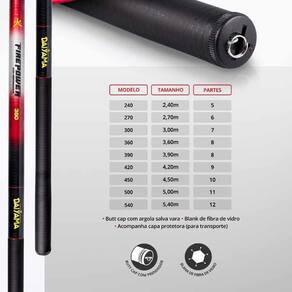 Vara Telescópica Firepower Daiyama Tamanho 5,00m Vara Telescópica Firepower DaiyamaAs varas Daiyama FirePower foram projetadas com lindo design e melhor qualidade para atender as necessidades dos pescadores mais exigentes.Ao mesmo tempo que oferece grande sensibilidade para perceber os toques mais sutis na linha.Vara telescópica lisa, leve, resistente, possui gomos curtos, com tubos reforçados e de fácil transporte, pois, quando fechada ocupa pouco espaço.Tem uma pegada mais firme na hora da briga com o peixe. Fabricada em fibra de vidro com ponteira maciça e cabo antiderrapante.É ideal para pesca de uma grande variedade de peixes como Tainha, Tilápia, Piau entre outros que exigem grandes arranques na fisgada.Produzida em fibra de vidro e com reforços em sua estrutura a torna uma vara com uma incrível resistência e durabilidade.Especificações:Fibra de vidro composto e argola salva VarasTamanho Fechada: 60cm Tamanho Das Variações: Vara telescópica de pesca firepower 2,40mVara telescópica de pesca firepower 2,70mVara telescópica de pesca firepower 3,00mVara telescópica de pesca firepower 3,60mVara telescópica de pesca firepower 3,90mVara telescópica de pesca firepower 4,20mVara telescópica de pesca firepower 4,50mVara telescópica de pesca firepower 5,00mVara telescópica de pesca firepower 5,40m Marca: Não Informado
