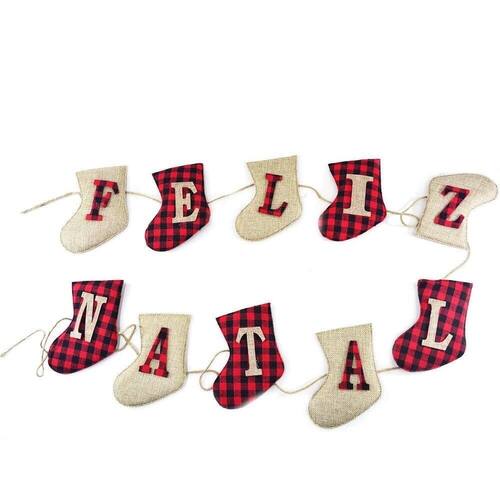 Varal Bota Feliz Natal Pelúcia 130cm - Adquira belas decorações de natal para enfeitar ambientes na melhor época do ano;\n- Enfeite decorativo baral ded botinhas com frase "Feliz Natal" na cores natural e vermelho;\nEspecificações:\nMarca : RIO MASTER\nTipo de material : Pelúcia\nCores ou Estampa : Colorido\nDimensões do Produto : 15 X 130 X 1 CM\nDimensões da Embalagem : 15 X 24 X 5 CM\nPeso Bruto (Gramas) : 0.049 Marca: Não Informado