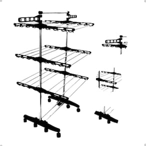 Varal de chão pratico, com 3 andares de prateleiras retráteis, feito para economizar o espaço em sua casa e trazer praticidade, agilidade na secagem de roupas, toalhas, roupas íntimas e calçados.