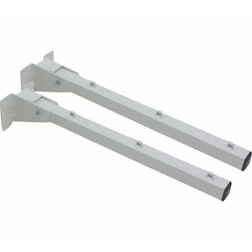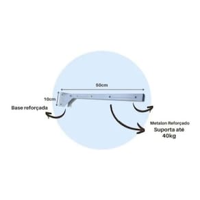 Varal indicado para áreas espaçosas quanto áreas pequenas. Pode ser com corda, cabo de aço ou similares. - tamanho do braço: 50cm. - medida varal fechado: 6cm. - medida aberto: 50 cm. - peso suportado: 40kg. - espessura do braço: 3cm x 3cm. - capacidade: 3 fios de varal. - material: aço carbono galvanizado. - cor: branco pintura epóxi a pó de alta resistência . - distância entre os furos que passam as cordas: 12cm. - fixação: parafusos e buchas. Não acompanha kit fixação buchas e parafusos Não acompanha qualquer tipo de varal ou fio de aço
